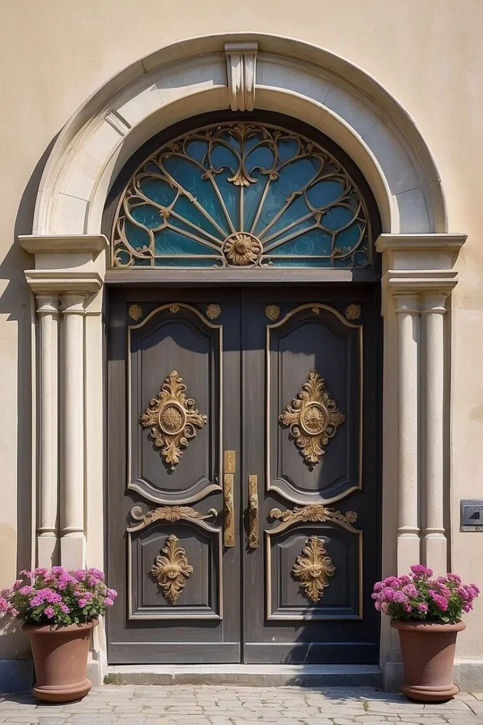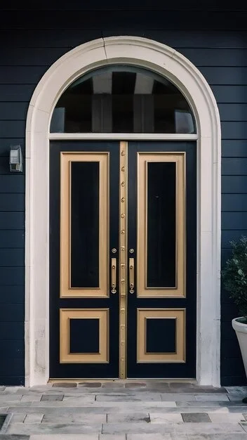 - ✨ Luxury doors: Polished brass, gold, or bronze with decorative details