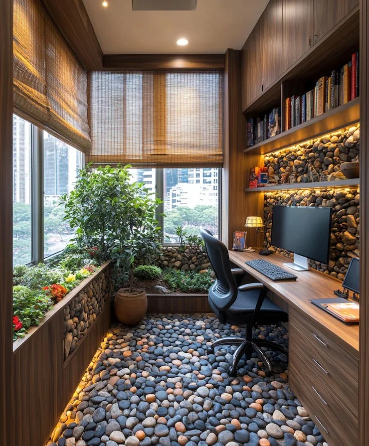11. Zen Garden Office with River Rock Floor 🪨