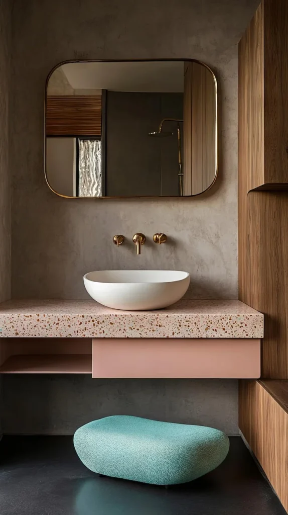12. 🎨 The Modern Eclectic: Terrazzo Chic Meets Blush Pink and Brass Charm
