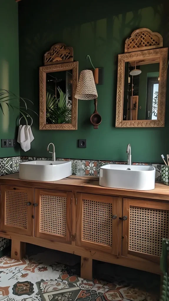 Ever walked into a bathroom and felt like you just stepped off a plane in Marrakech? That’s this. Rich, deep emerald green walls wrap around you like a warm hug from an old friend who’s seen the world.