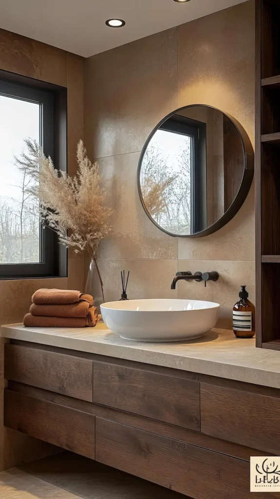 Pro Tip: Stack terracotta or camel-colored towels on the counter for a cohesive earthy palette. Add one aromatherapy diffuser. Done. Let simplicity shine. 🌿✨